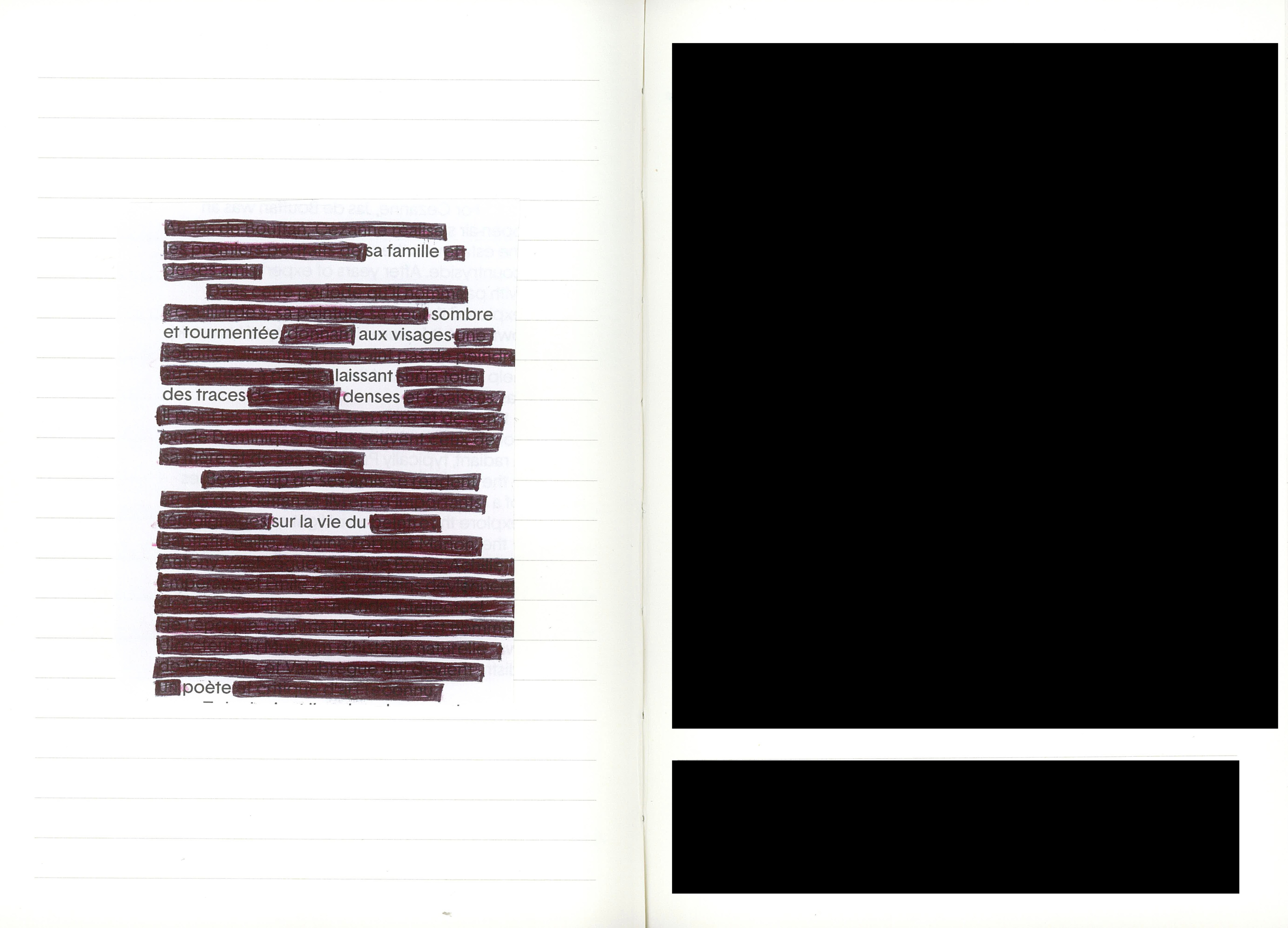 Et quand je ne sais plus qu’écrire, je découpe un paragraphe dans un dépliant de musée et j’écris un poème à partir de mots qui ne sont pas les miens.