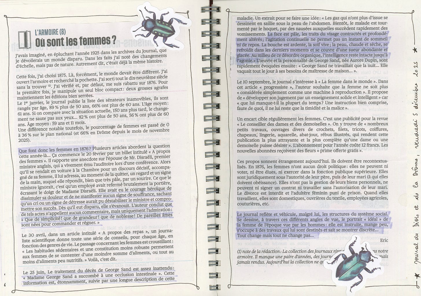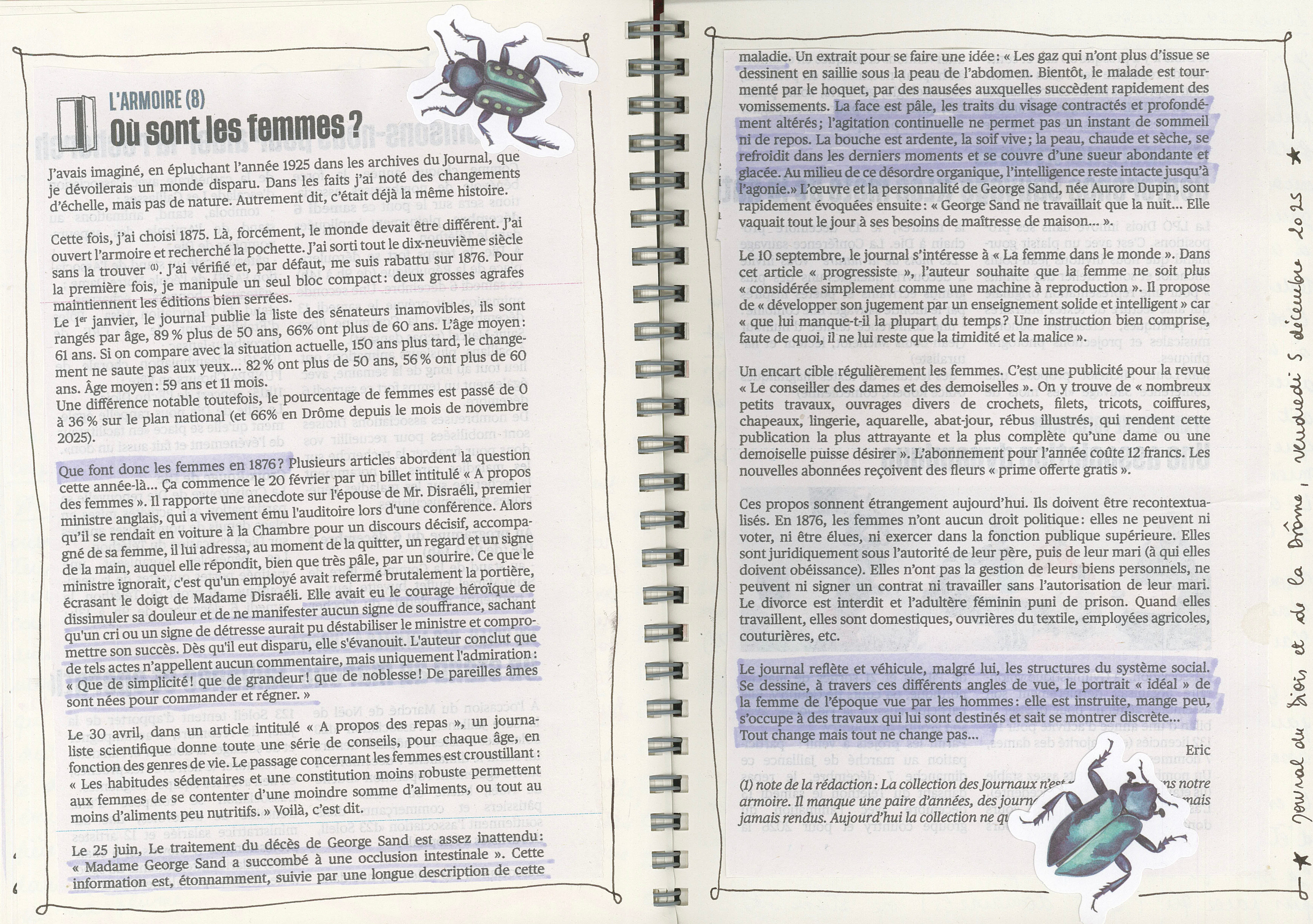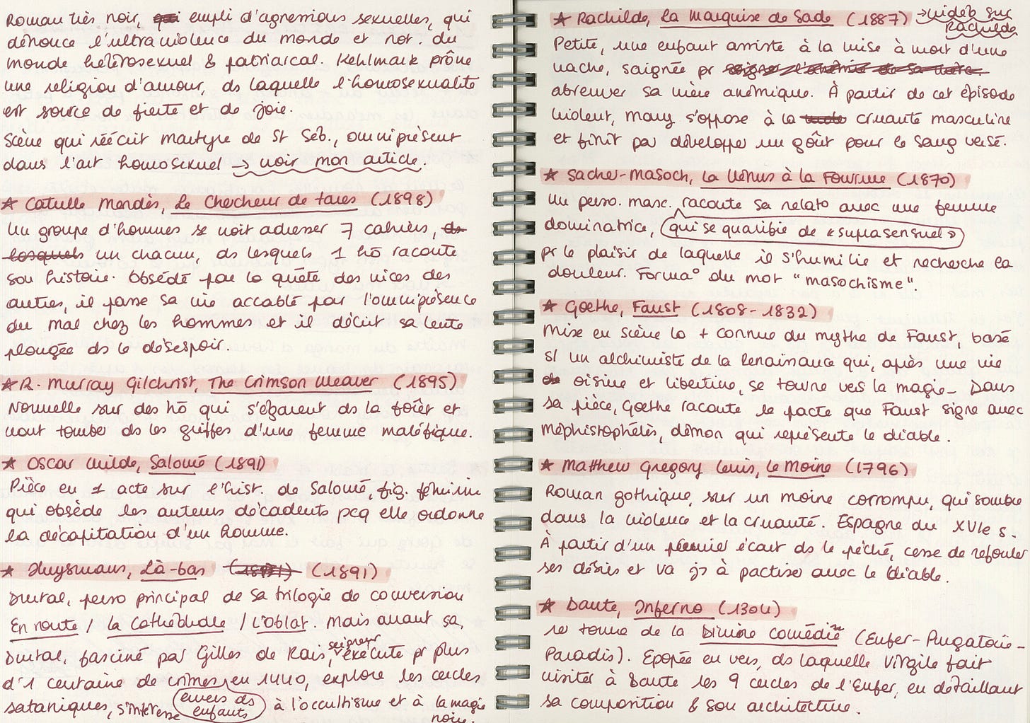 Comme toujours, j’utilise aussi mon carnet pour planifier et scripter mes vidéos Youtube. Cette semaine-là, je prends des notes pour une vidéo sur Georges de Peyrebrune3, autrice de la fin du XIXe siècle dont je viens de terminer le roman Gatienne.