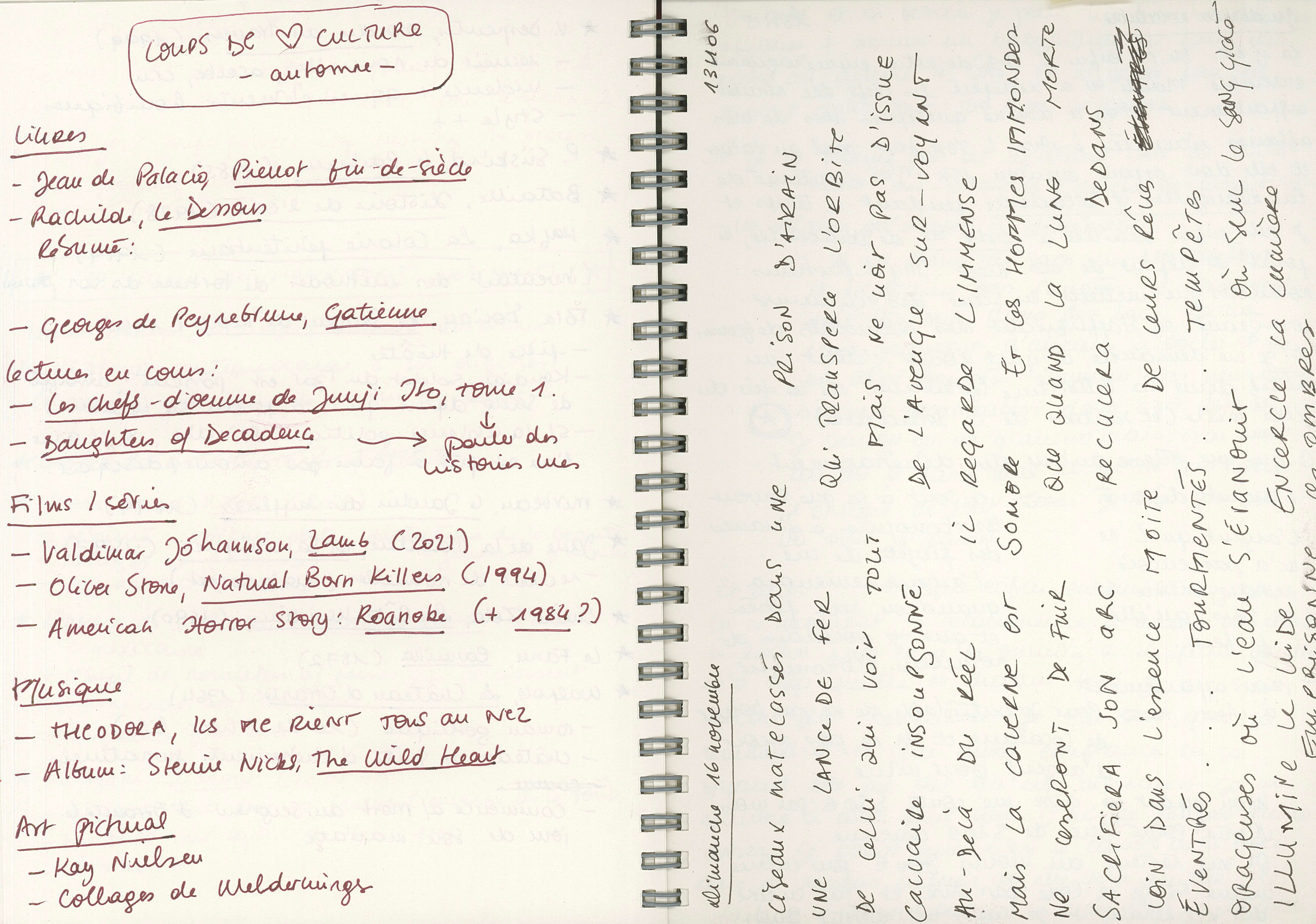 Et puis, à côté d’un énième poème, mes coups de cœur culturels de l’automne :