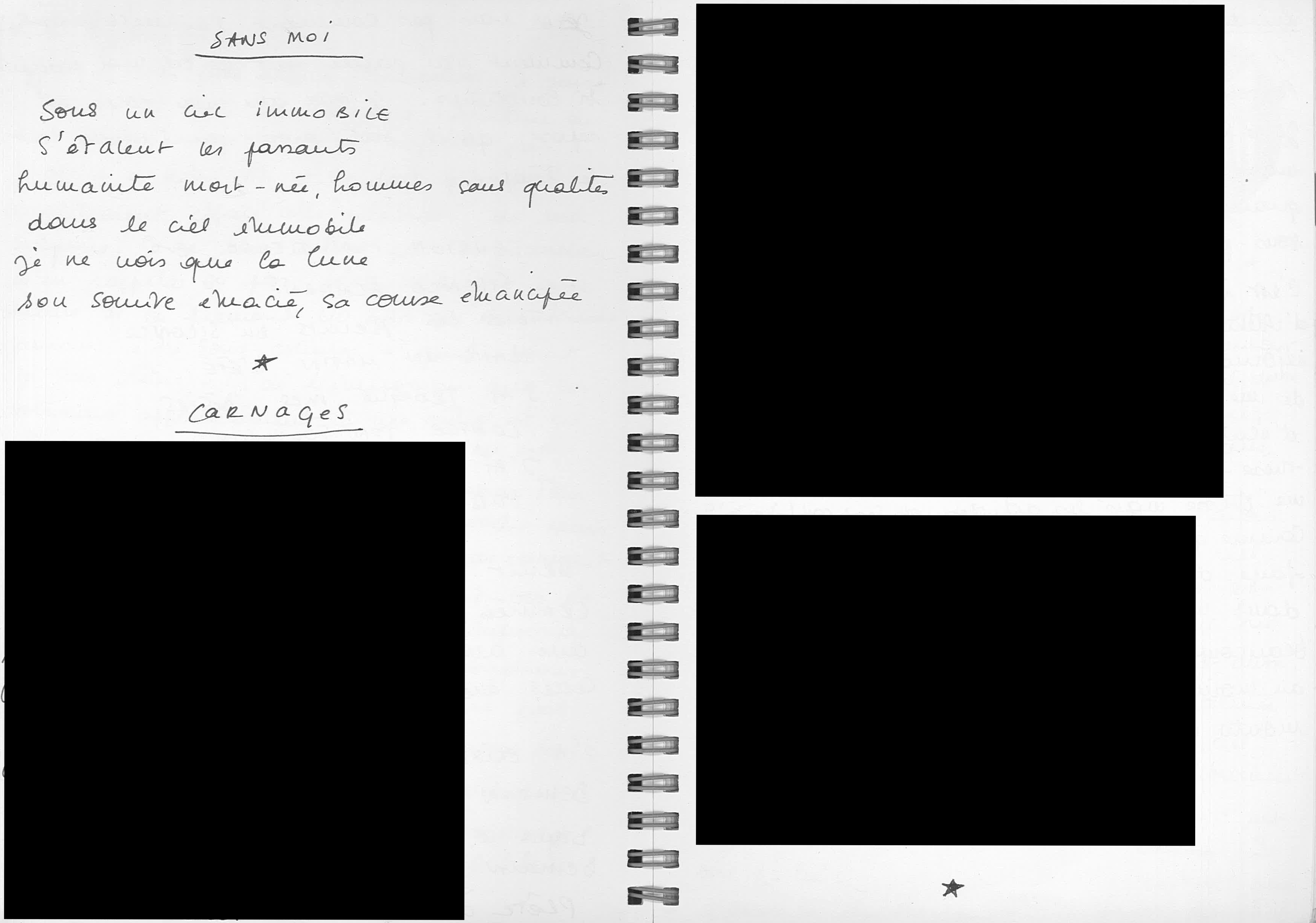 Comme je l’ai écrit dans un article précédent2, j’ai passé une grande partie de cette moitié d’année dans le train. J’y ai écrit ce petit poème, “Sans moi”, et un autre que je ne vous montre pas. C’est dans le train que j’écris le plus de poèmes, dans cet espace hors-temps, hors-lieu, qui favorise l’escapade artistique.