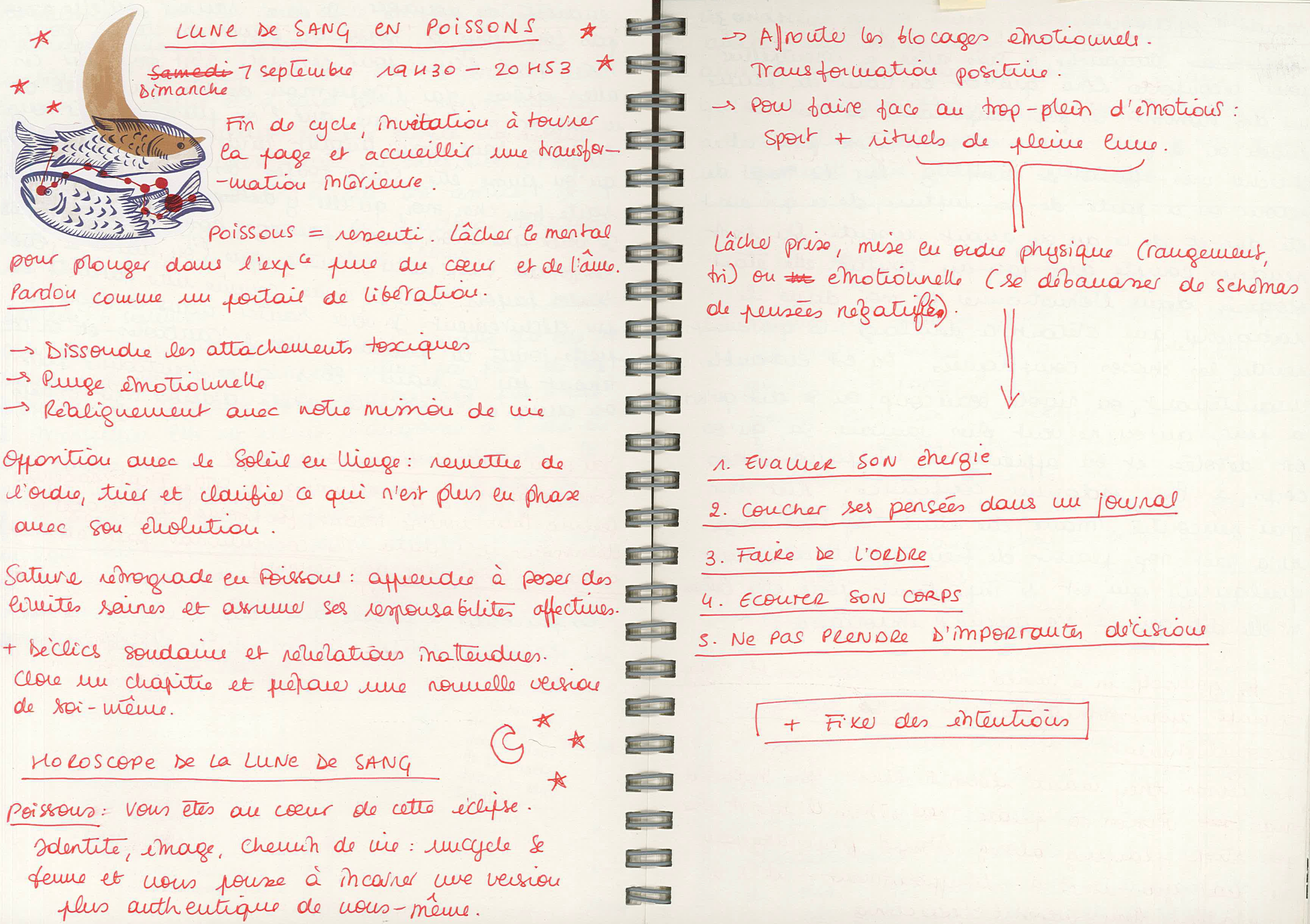 Tout de suite après avoir pris ces notes, je sors passer du temps avec A à qui je parle de ce rituel. Le lendemain, elle me raconte avoir pris le temps d’en effectuer toutes les étapes et avoir adoré ce rituel du dimanche soir – toutes les excuses sont bonnes pour encourager chaque personne de mon entourage à utiliser un carnet.